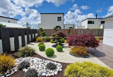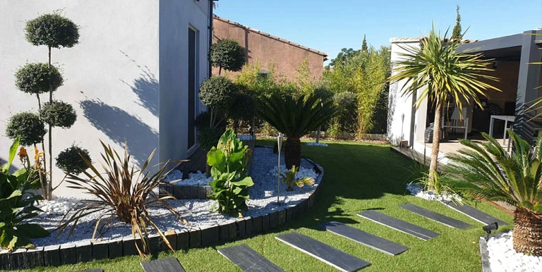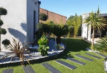 Conception et réalisation de jardins personnalisés, plantations et gazons adaptés.
